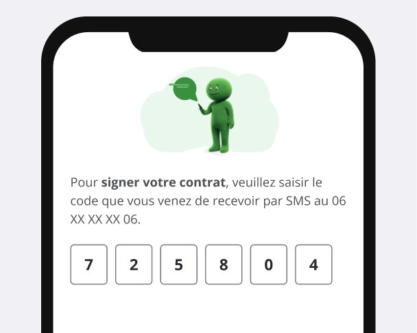 Renseignez vos informations, téléchargez vos justificatifs et signez via un code reçu par sms.