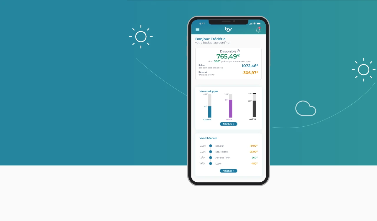 En analysant les opérations bancaires, BGV utilise les meilleures technologies pour aider à reprendre le contrôle d’un budget de manière simple, ludique et rapide. Gratuit, sécurisé et à but non-lucratif, BGV est pensé pour que chacun soit accompagné dans ses besoins et que la vie de tous soit simplifiée.
